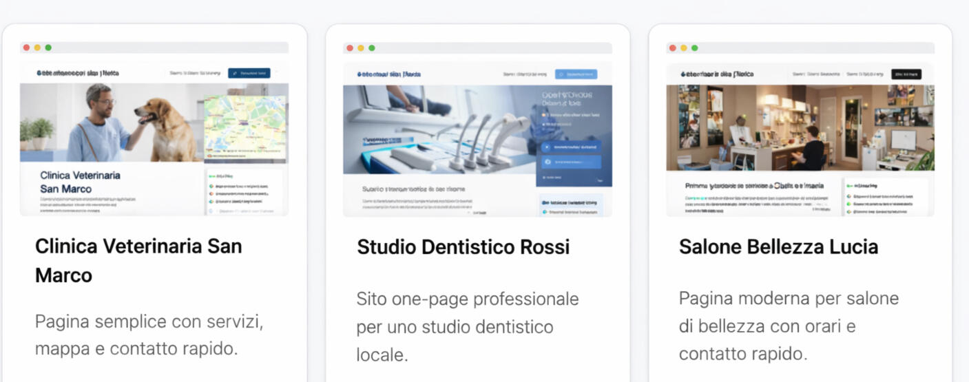 Una pagina veloce e chiara con servizi, mappa e contatto immediato. Pronta in pochi giorni.